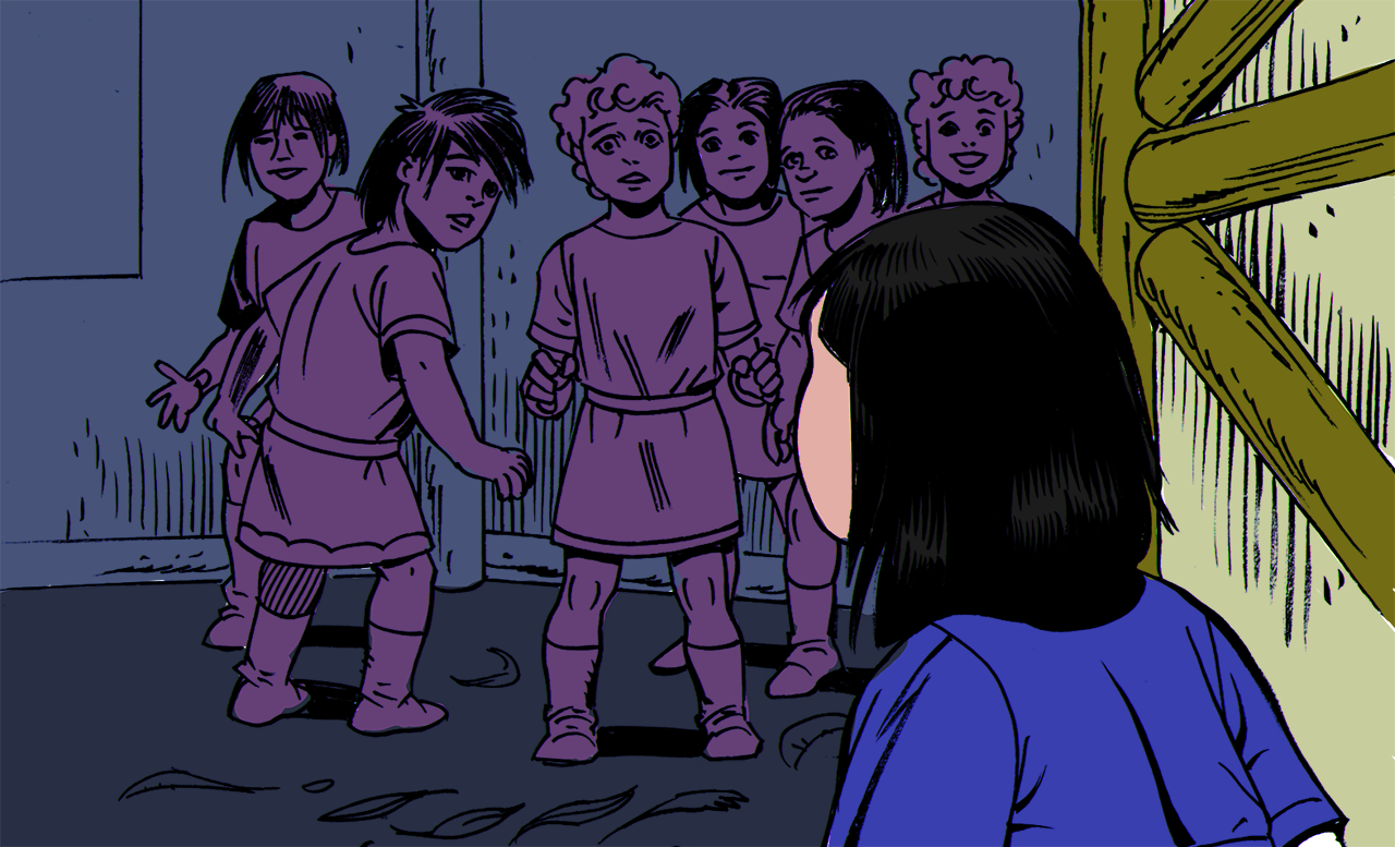 These are illustrations created for videos for deaf children, my cartoons were displayed behind an interpreter at key moments of the stories. Pencils by Dell Barras, I provided the digital colors and the art direction.