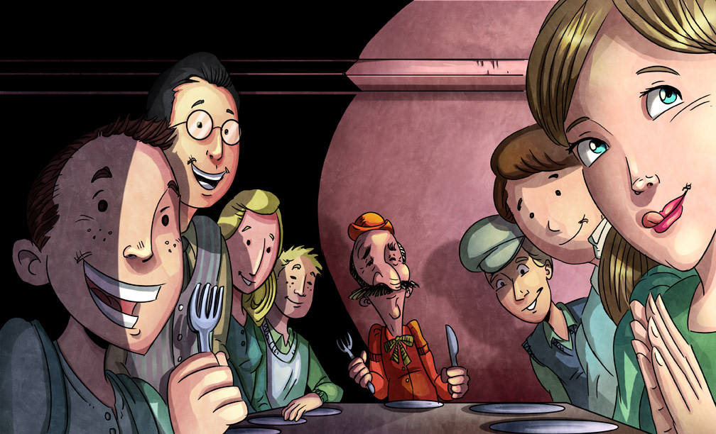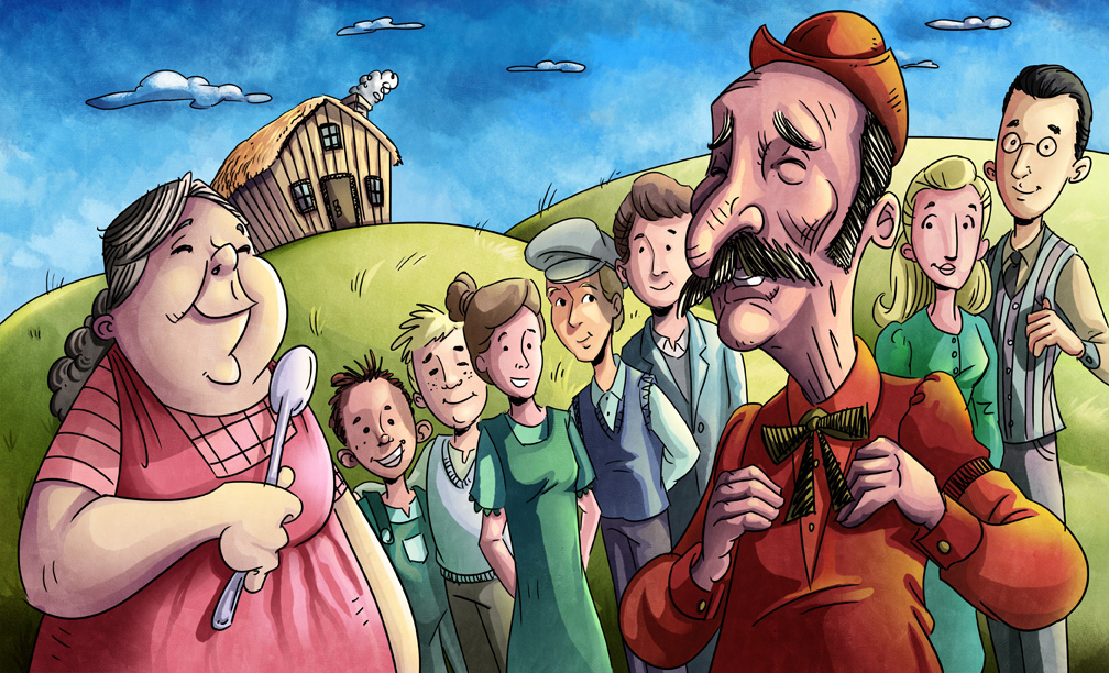 These are illustrations created for videos for deaf children, my cartoons were displayed behind an interpreter at key moments of the stories.